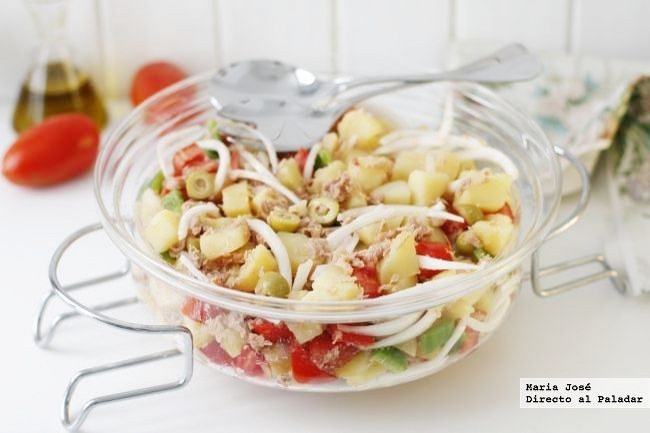 - Ensalada payesa al estilo ibicenco: en este plato las patatas y los vegetales ofrecen hidratoscomplejos con mucha fibra, mientras que el atún aporta sus proteínas de calidad y las aceitunas junto al aceite de oliva brindan la cuota de grasas sanas. Se trata de una receta con muchas vitaminas y minerales y con el sabor ideal para mimar el paladar.